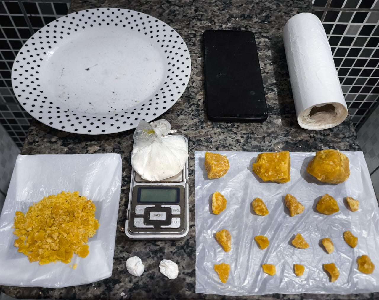 Após abordagem e constatada a droga, a equipe realizou a vistoria no imóvel abandonado, no local foram achados 15 gramas de cocaína, 79 gramas de crack não fracionados e 16 grama de crack prontos para venda.