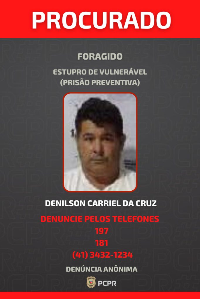 A PCPR segue em diligências para localizar o indivíduo. Denúncias podem ser repassadas de forma anônima pelos telefones 197, da PCPR ou (41) 3432-1234, diretamente à equipe de investigação.