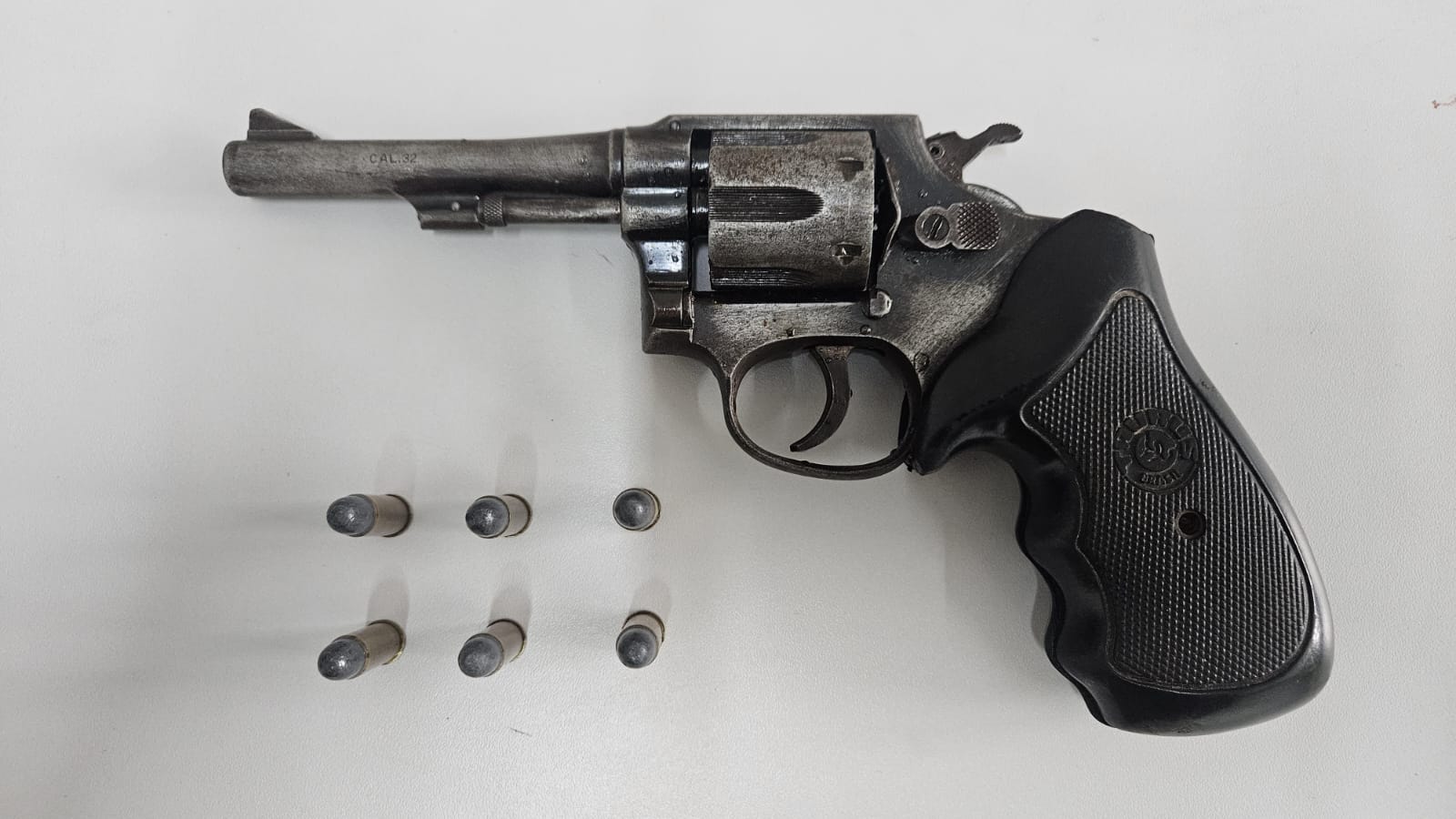 O revólver calibre 32 estava com seis munições intactas no tambor. O armamento foi recolhido e encaminhado para a delegacia para as medidas cabíveis.