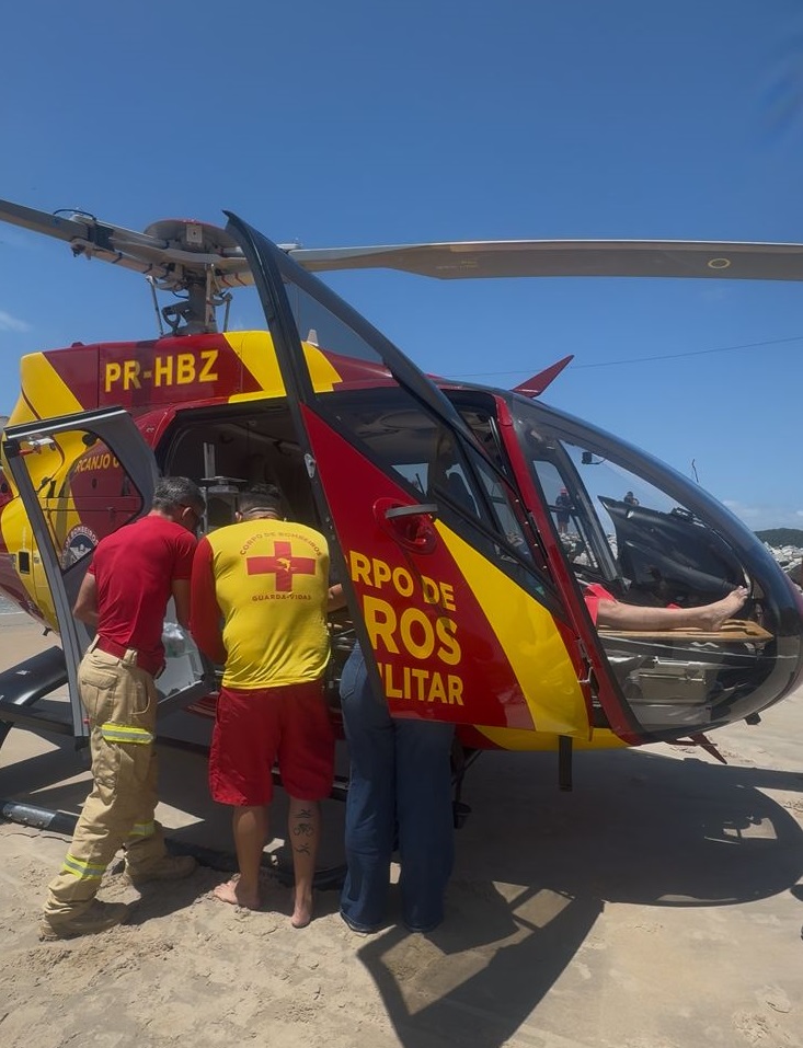 As equipes de emergência fizeram o encaminhamento da vítima para a UPA Praia Grande e após a estabilização, o helicóptero do BPMOA fez a transferência para o Hospital Regional do Litoral, em Paranaguá.