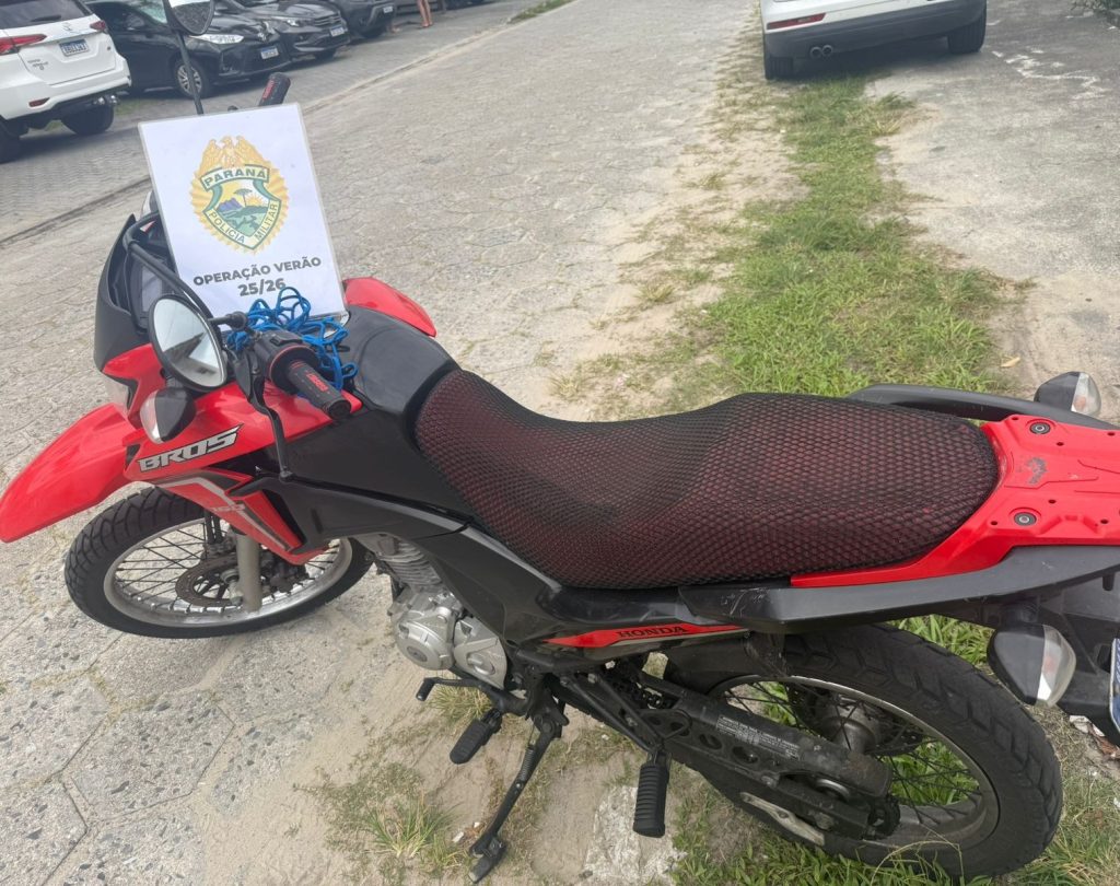 Um homem foi preso e uma motocicleta com alerta de furto foi recuperada pela Polícia Militar do Paraná (PMPR) na tarde desta quarta-feira (21), no balneário de Shangri-lá, em Pontal do Paraná.