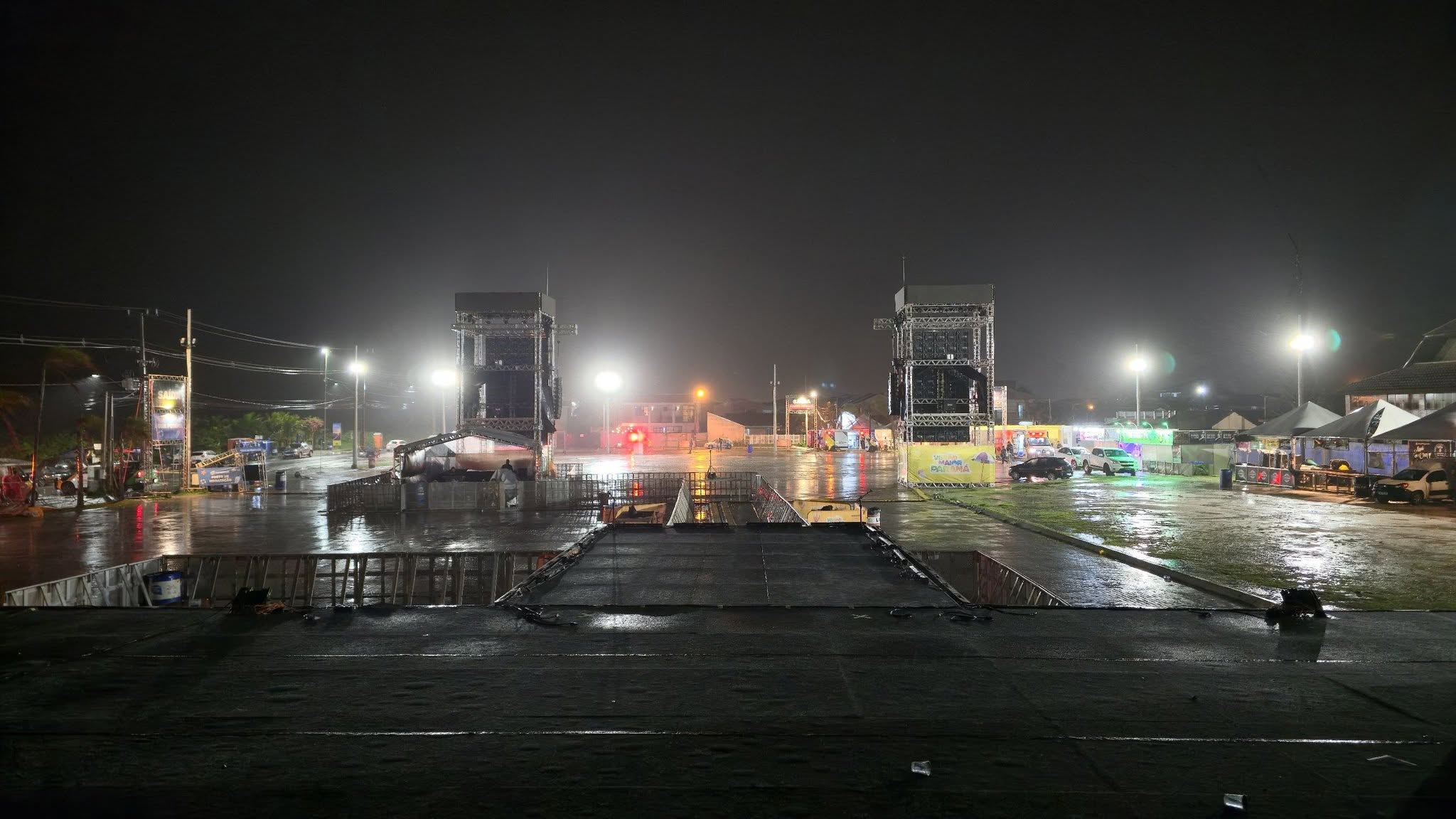 Já em Pontal do Paraná, os shows das duplas João de Souza & Bonifácio e Trio Parada Dura, programados para às 20h e 22h, respectivamente, foram cancelados devido à intensidade das chuvas.
